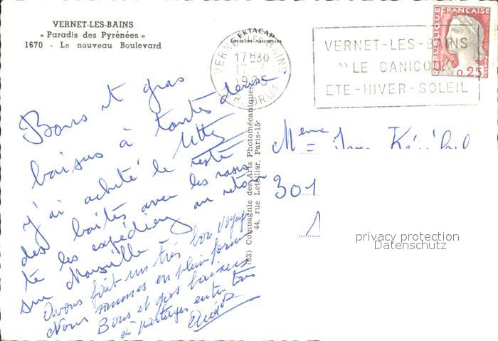 12496771 carte postale Vernet-les-Bains Le nouveau Boulevard Paradis des Pyrenees postalisch gelaufen Erhaltung siehe scans KatCode: 11170066366222