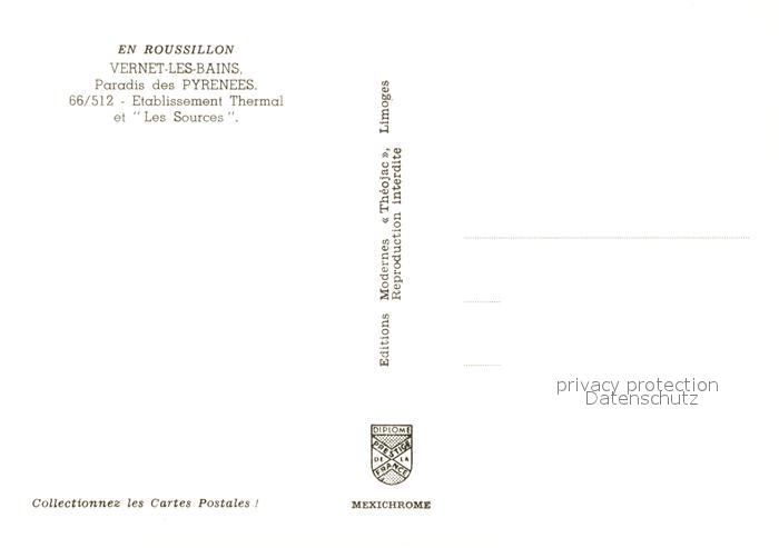 13492554 Vernet-les-Bains Paradis des Pyrenees Etablissement Thermal et Les Sources postalisch nicht gelaufen Erhaltung siehe scans [WerneD78] KatCode: 11170066366222