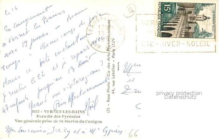 13483391 carte postale Vernet-les-Bains Vue prise de Saint Martin du Canigou Pyrénées postalisch gelaufen Erhaltung siehe scans [FriedD77] KatCode: 11170066366222
