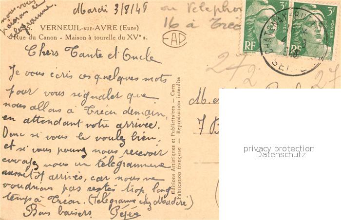 13572277 carte postale Verneuil-sur-Avre Rue du Canon Maison a Tourelle postalisch gelaufen Erhaltung siehe scans [PaolaD17] KatCode: 11170027327679