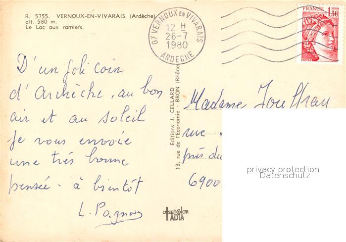 carte postale Vernoux-en-Vivarais Panorama lac aux ramiers Paysage postalisch gelaufen Erhaltung siehe scans [FriedD77]