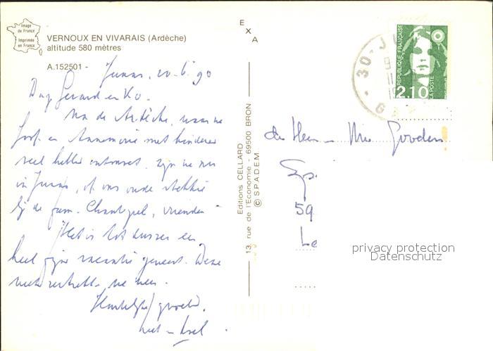 11937831 carte postale Vernoux-en-Vivarais postalisch gelaufen Erhaltung siehe scans KatCode: 11170007307338