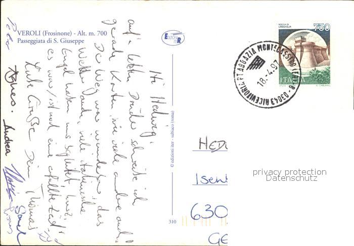old postcard Veroli Frosinone Passeggiata di S Giuseppe postalisch gelaufen Erhaltung siehe scans