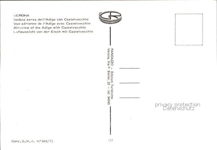 Verona Veneto Adige con Castelvecchio veduta aerea postalisch nicht gelaufen Erhaltung siehe scans