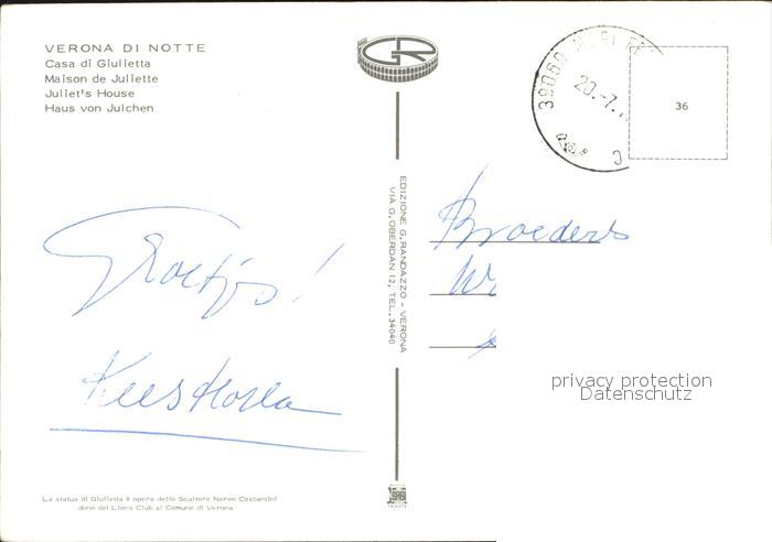 old postcard Verona Veneto Casa di Giulietta postalisch gelaufen Erhaltung siehe scans