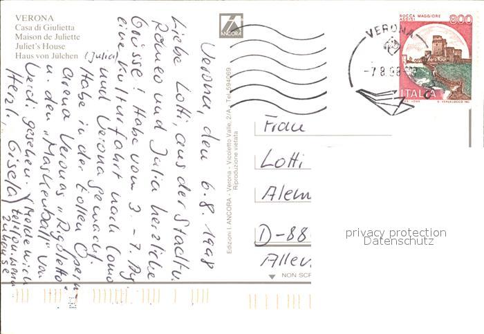 old postcard Verona Veneto Casa di Giulietta postalisch gelaufen Erhaltung siehe scans