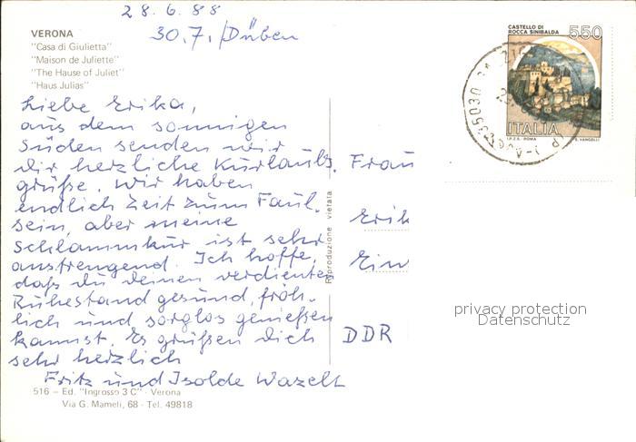 old postcard Verona Veneto Casa Giulietta postalisch gelaufen Erhaltung siehe scans