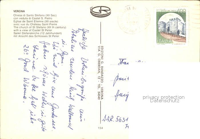 old postcard Verona Veneto Chiesa di Santo Stefano XII secolo Sankt Stefanskirche postalisch gelaufen Erhaltung siehe scans