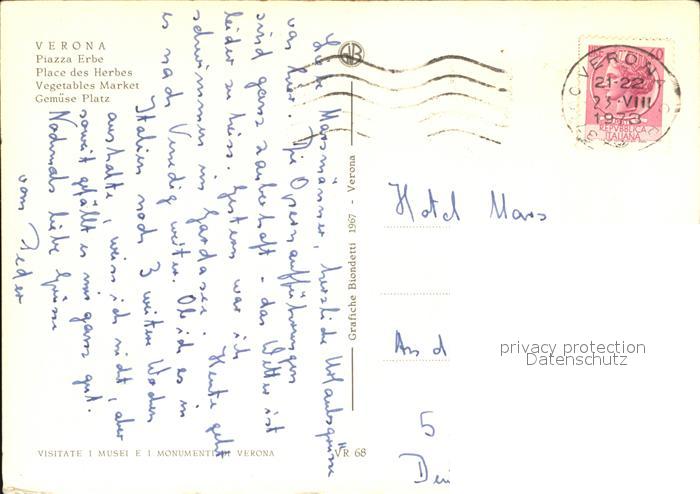 old postcard Verona Veneto Gemuese Markt postalisch gelaufen Erhaltung siehe scans