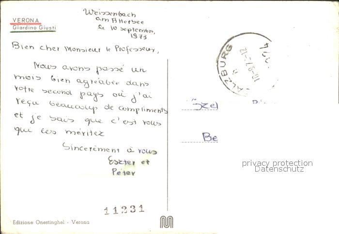 old postcard Verona Veneto Giardino Giusti postalisch gelaufen Erhaltung siehe scans