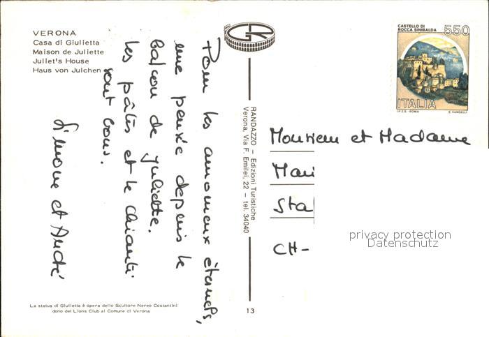 Verona Veneto Haus von Julia postalisch nicht gelaufen Erhaltung siehe scans