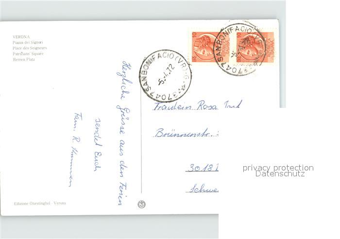 old postcard Verona Veneto Herren Platz postalisch gelaufen Erhaltung siehe scans
