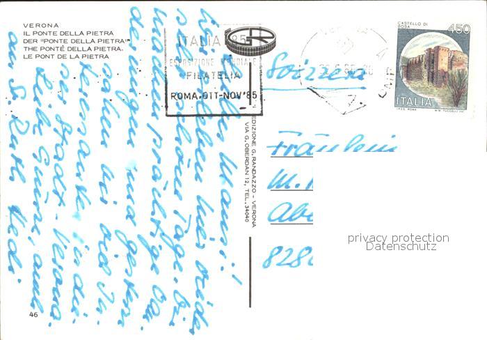 old postcard Verona Veneto Il Ponte della Pietra Bruecke postalisch gelaufen Erhaltung siehe scans