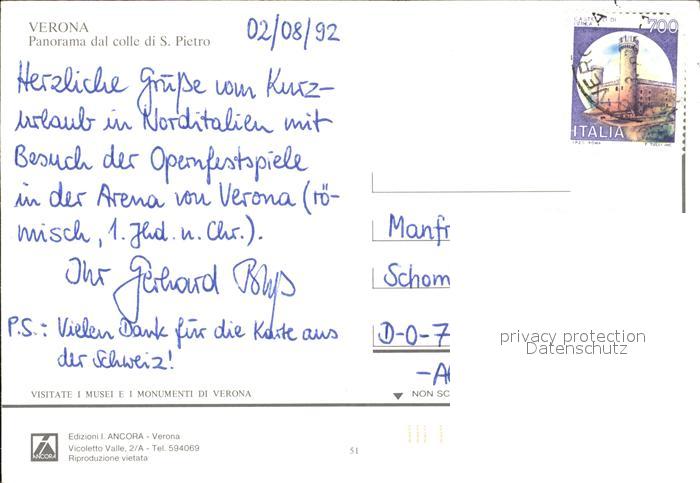 old postcard Verona Veneto Panorama dal colle di San Pietro postalisch gelaufen Erhaltung siehe scans