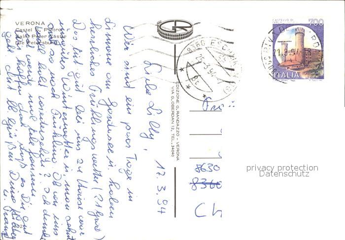 old postcard Verona Veneto Petersburg postalisch gelaufen Erhaltung siehe scans