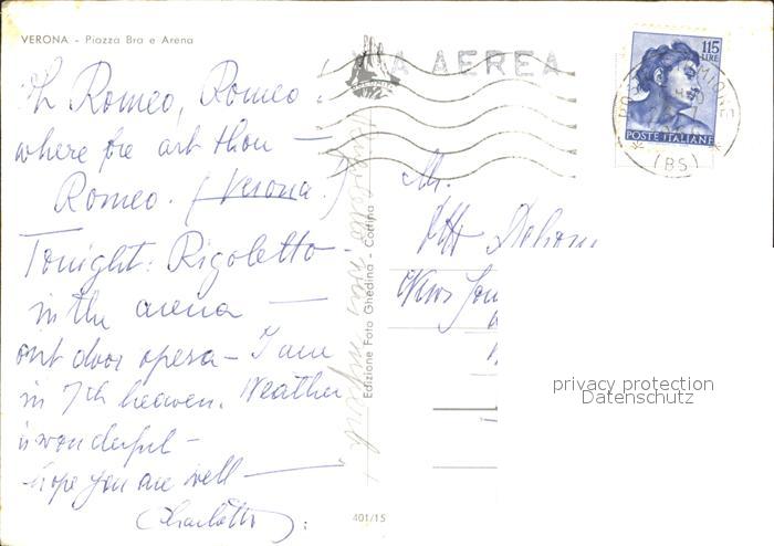 old postcard Verona Veneto Piazza Bra e Arena postalisch gelaufen Erhaltung siehe scans