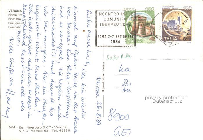 old postcard Verona Veneto Piazza Bra Platz Arena postalisch gelaufen Erhaltung siehe scans