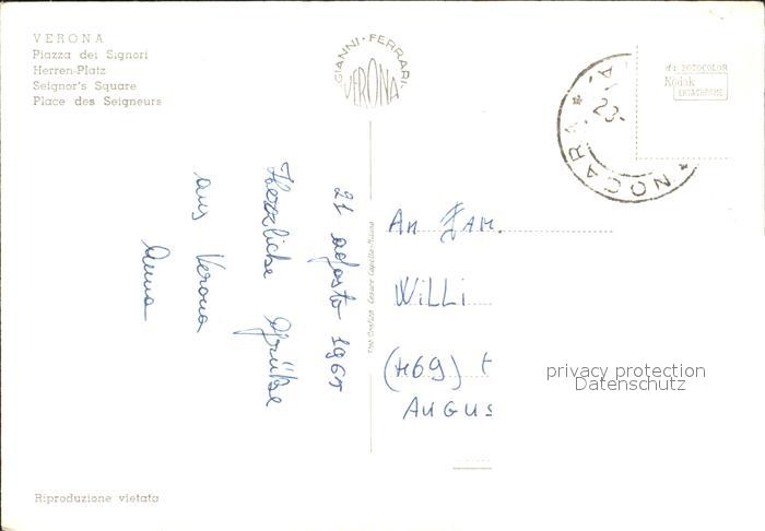 old postcard Verona Veneto Piazza dei Signori postalisch gelaufen Erhaltung siehe scans