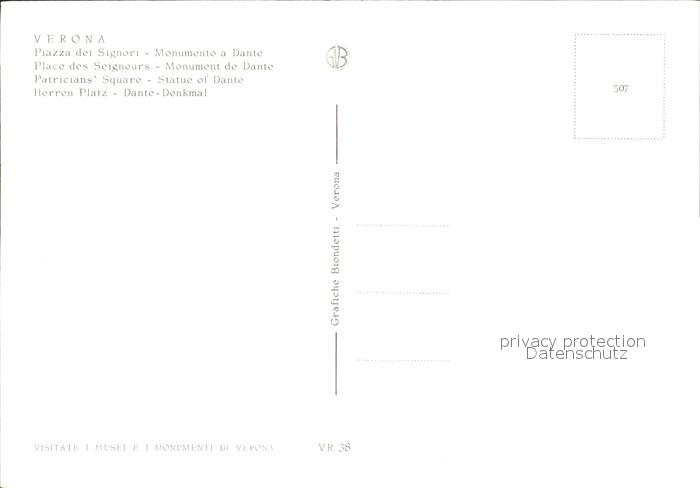 Verona Veneto Piazza dei Signori Monumento a Dante Denkmal postalisch nicht gelaufen Erhaltung siehe scans