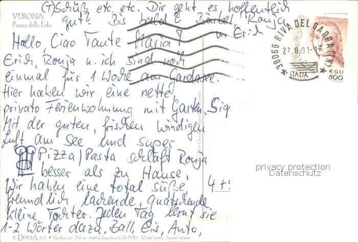 old postcard Verona Veneto Piazza delle Erbe Fontana Brunnen postalisch gelaufen Erhaltung siehe scans