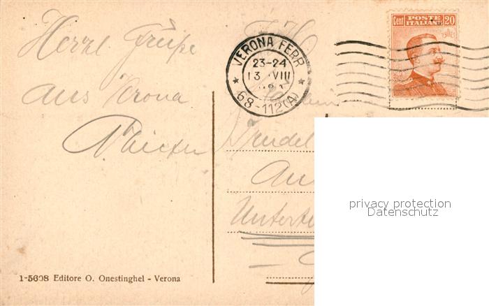 old postcard Verona Veneto Piazza Erbe postalisch gelaufen Erhaltung siehe scans [PaolaD17]