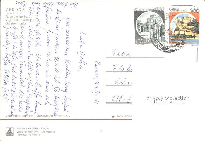 old postcard Verona Veneto Piazza Erbe postalisch gelaufen Erhaltung siehe scans