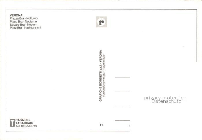 Verona Veneto Platz Bra postalisch nicht gelaufen Erhaltung siehe scans