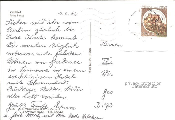 old postcard Verona Veneto Ponte Pietra postalisch gelaufen Erhaltung siehe scans