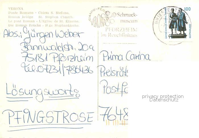 old postcard Verona Veneto Ponte Romano Chiesa Santo Stefano Bruecke Stephankirche postalisch gelaufen Erhaltung siehe scans [FriedD77]
