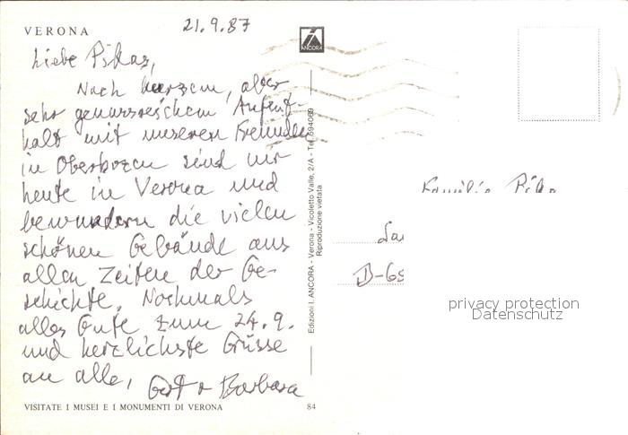 old postcard Verona Veneto Romeo Julia Balkon postalisch gelaufen Erhaltung siehe scans