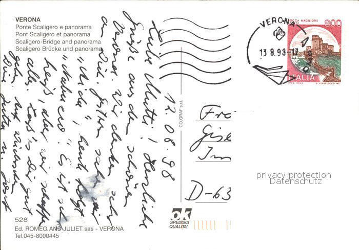 old postcard Verona Veneto Scaligero Bruecke postalisch gelaufen Erhaltung siehe scans