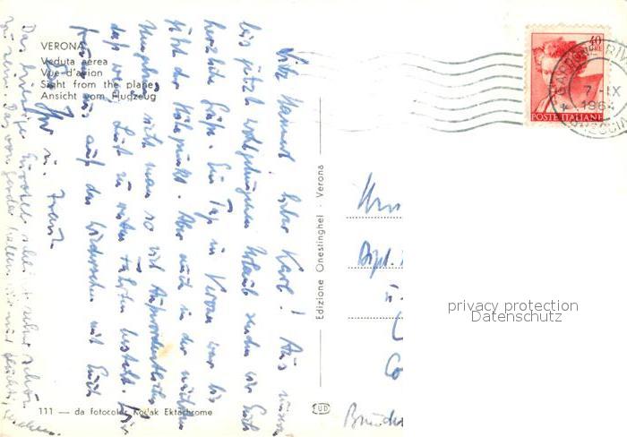 old postcard Verona Veneto Stadtbild mit Arena Fliegeraufnahme postalisch gelaufen Erhaltung siehe scans [FriedD77]