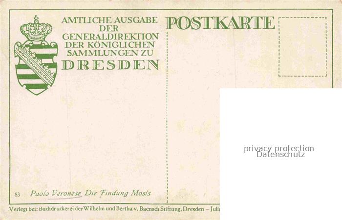 74033972 VERONESE Paolo Kuenstlerkarte Findung Mosis Hunde Dresden postalisch nicht gelaufen Erhaltung siehe scans [SanaeD93] KatCode: 22240000003210