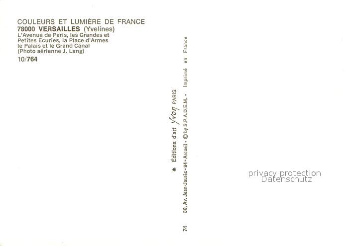 13721555 Versailles 78 Avenue de Paris les Ecuries Place d Armes Palais Grand Canal vue aérienne Collection Couleurs et Lumière de France postalisch nicht gelaufen Erhaltung siehe scans [FriedD77] Frie Katcode 11170078478646