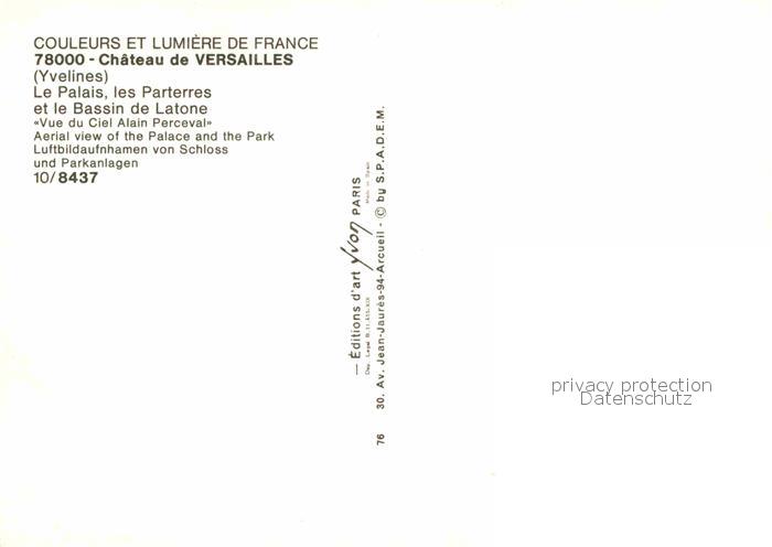 12771142 Versailles Yvelines Fliegeraufnahme von Schloss und Parkanlagen postalisch nicht gelaufen Erhaltung siehe scans [WerneD78] KatCode: 11170078478646