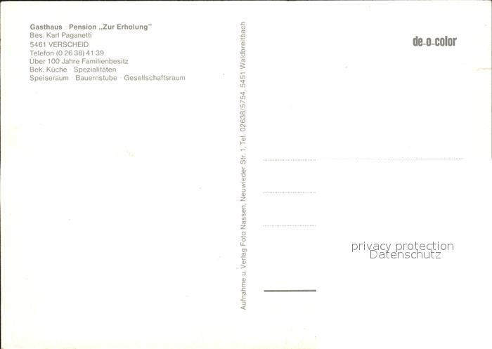 72429997 Verscheid Linz Rhein Gasthaus Pension Zur Erholung postalisch nicht gelaufen Erhaltung siehe scans KatCode: 11110007138006