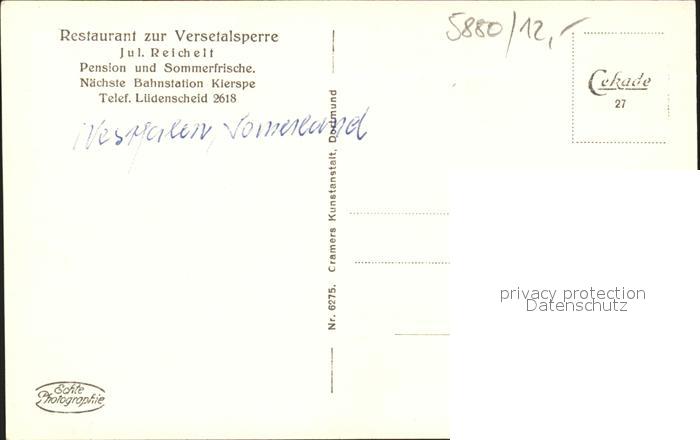 71838627 Versetalsperre Staumauer postalisch nicht gelaufen Erhaltung siehe scans KatCode: 11110005962032