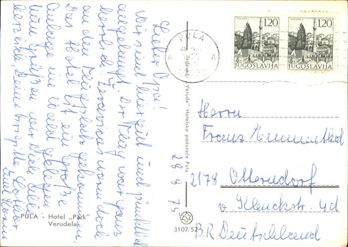 old postcard Verudela Park Hotel Strand Restaurant postalisch gelaufen Erhaltung siehe scans