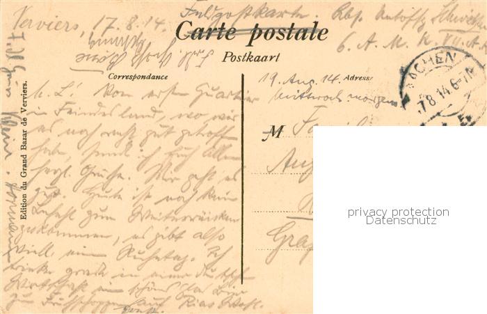 73769283 carte postale Verviers Liege Wallonie Belgie La Vesdre postalisch gelaufen Feldpost auf Karte (Motiv) Erhaltung siehe scans [FriedD77] KatCode: 11070063000646