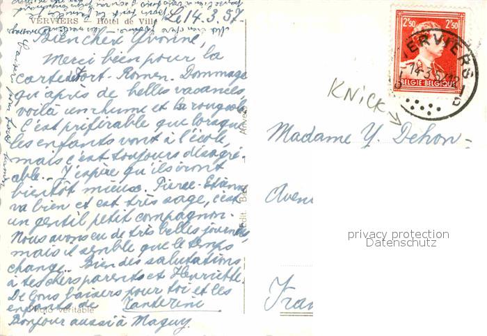 72649262 carte postale Verviers Liege Wallonie Hotel de Ville postalisch gelaufen Erhaltung siehe scans [FriedD77] KatCode: 11070063000646