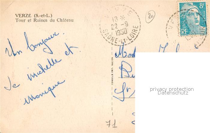 13482358 carte postale Verze Tour et Ruines du Chateau postalisch gelaufen Erhaltung siehe scans [FriedD77] KatCode: 11170071571574