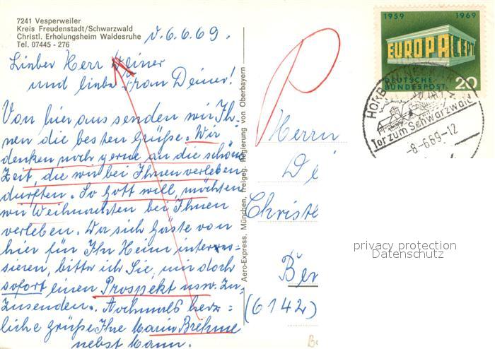 73644276 alte Postkarte Vesperweiler Christliches Erholungsheim Waldesruhe im Schwarzwald Fliegeraufnahme postalisch gelaufen Erhaltung siehe scans [FriedD77] KatCode: 11110008237074