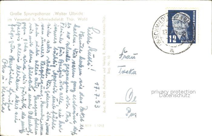 71985761 alte Postkarte Vesser Rennsteig Grosse Sprungschanze Walter Ulbrich postalisch gelaufen Erhaltung siehe scans KatCode: 11110016070046