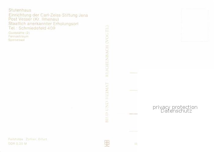 72841822 Vesser Rennsteig Stutenhaus Einrichtung der Carl Zeiss Stiftung Gaststaettee Fernsehraum Speisesaal postalisch nicht gelaufen Erhaltung siehe scans [WerneD78] KatCode: 11110016070046
