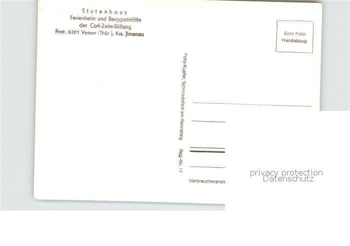 72581155 Vesser Rennsteig Stutenhaus Ferienheim Berggaststaette Carl Zeiss Stiftung Adlersberg Handabzug postalisch nicht gelaufen Erhaltung siehe scans [FriedD77] KatCode: 11110016070046