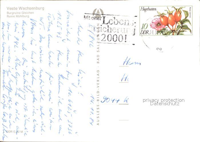 72321492 alte Postkarte Veste Wachsenburg Burgruine Gleichen und Ruine Muehlburg postalisch gelaufen Erhaltung siehe scans KatCode: 11110016070051