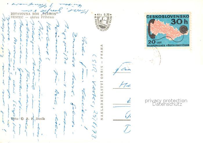 13278640 old postcard Vestec Zotavovna ROH okres Pribram postalisch gelaufen Erhaltung siehe scans [WerneD78] KatCode: 11520