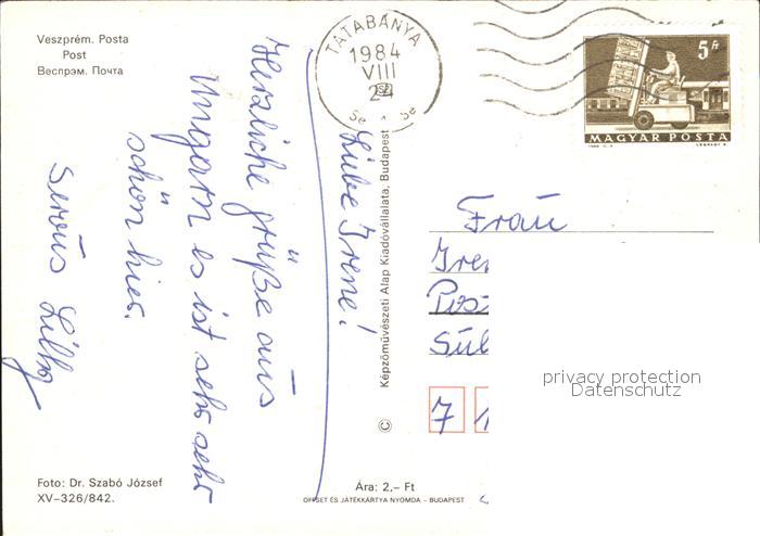 old postcard Veszprem Post postalisch gelaufen Erhaltung siehe scans