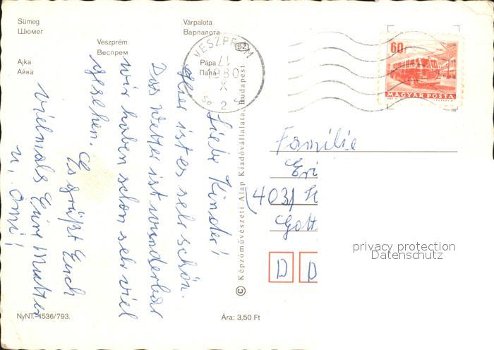 old postcard Veszprem Suemeg Ajka Varpalota Papa Burg Schloss Hochhaus postalisch gelaufen Erhaltung siehe scans