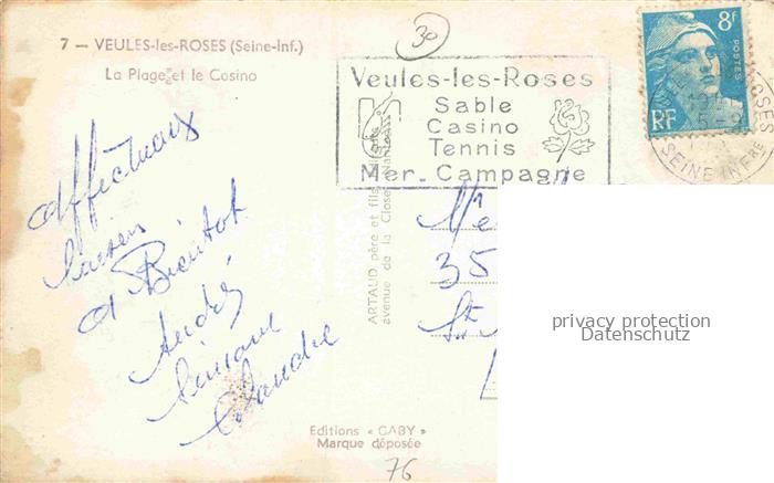 14109545 Veules-les-Roses Dieppe 76 Seine-Maritime La plage et le casino postalisch gelaufen Erhaltung siehe scans [FriedD77] carte postale Frie Katcode 11170076176735